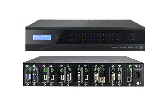 矩阵是一款单路无缝混合插卡矩阵切换器,任意配置输入或输出接口,视频输出信号间实现无缝切换。产品控制方式灵活多样:触摸式按键控制、RS232串口控制、GUI用户操作界面控制。