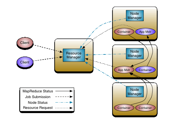 YARN是新一代Hadoop资源管理器,通过YARN,用户可以运行和管理同一个物理集群机上的多种作业,例如MapReduce批处理和图形处理作业。这样不仅可以巩固一个组织管理的系统数目,而且可以对相同的数据进行不同类型的数据分析。某些情况下,整个数据流可以执行在同一个集群机上。